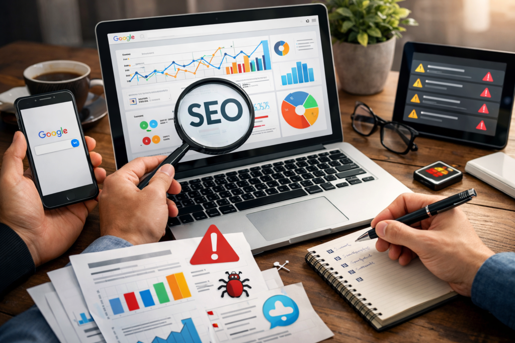 Untuk mengidentifikasi masalah SEO pada sebuah situs web secara akurat, mulailah dengan menetapkan tujuan kinerja yang jelas dan kumpulkan data dasar menggunakan alat seperti Google Analytics dan Search Console. Secara rutin periksa masalah umum seperti kecepatan halaman yang lambat, tautan rusak, konten duplikat, tag meta yang hilang, dan optimasi mobile yang buruk. Prioritaskan masalah yang paling memengaruhi peringkat pencarian dan pengalaman pengguna, serta gunakan daftar tindakan untuk memperbaiki secara terorganisir. Dengan strategi dan alat yang tepat, peningkatan dapat dilakukan langkah demi langkah; detail lebih lanjut menjelaskan setiap pendekatan.
